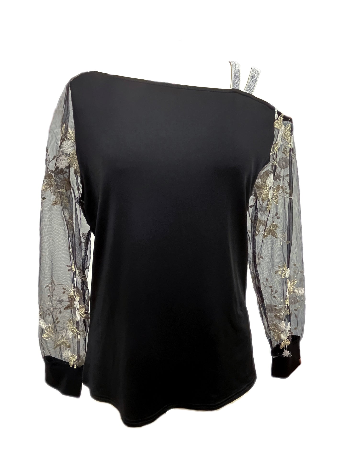 This elegant long-sleeve top features a unique asymmetrical neckline and delicate floral embroidery, adding a stylish twist to your wardrobe. Crafted from a soft, breathable blend of 95% polyester and 5% elastane, it offers slight stretch for a comfortable fit. Easy to care for with machine wash convenience, this regular-length knit fabric piece is perfect for spring, summer, and fall wear. Elevate your look with a sophisticated, solid-colour design that combines comfort and refined style effortlessly