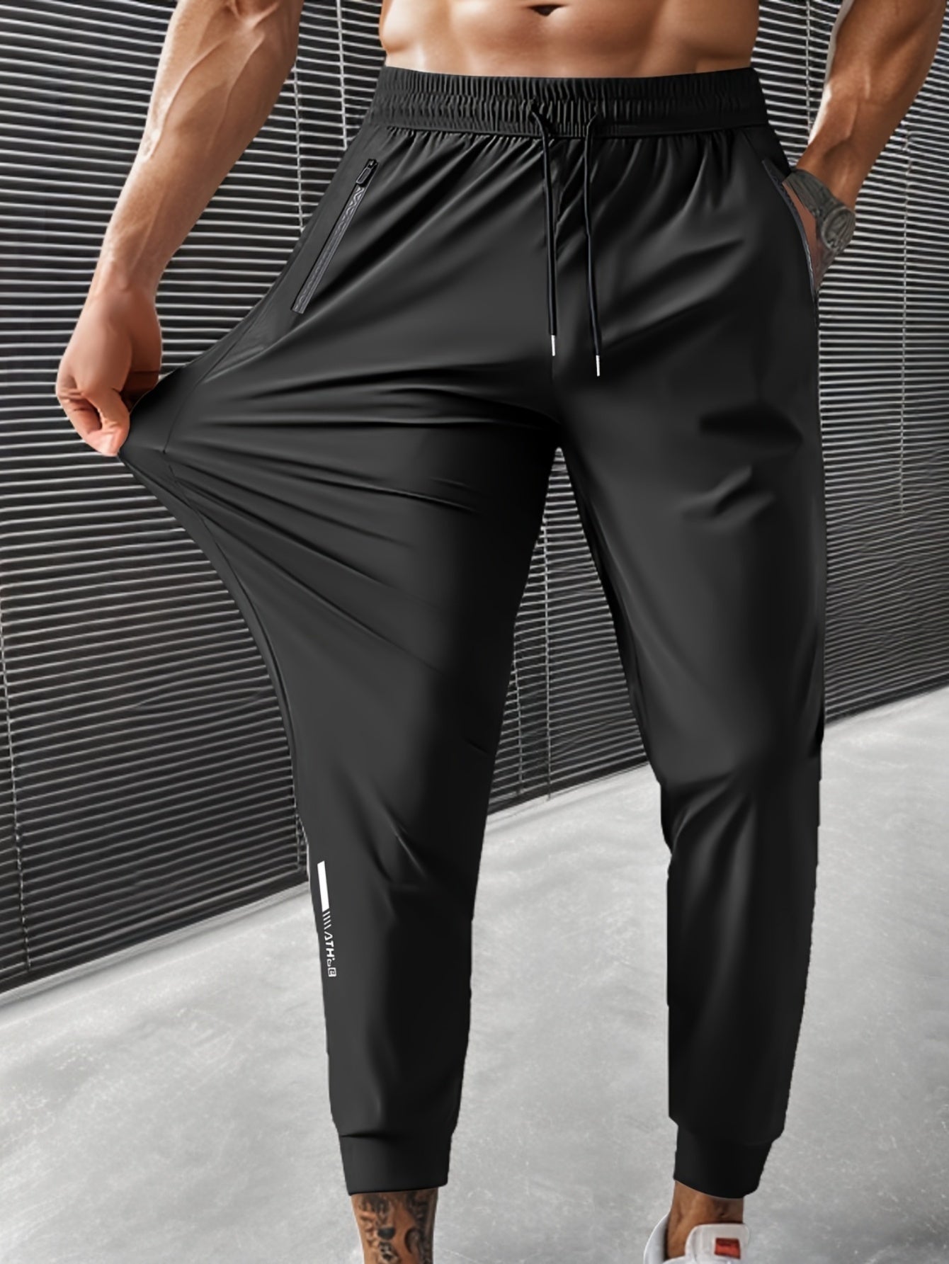 Mens Breathable Stretch Athletic Jogger Pants With Zipper Pockets