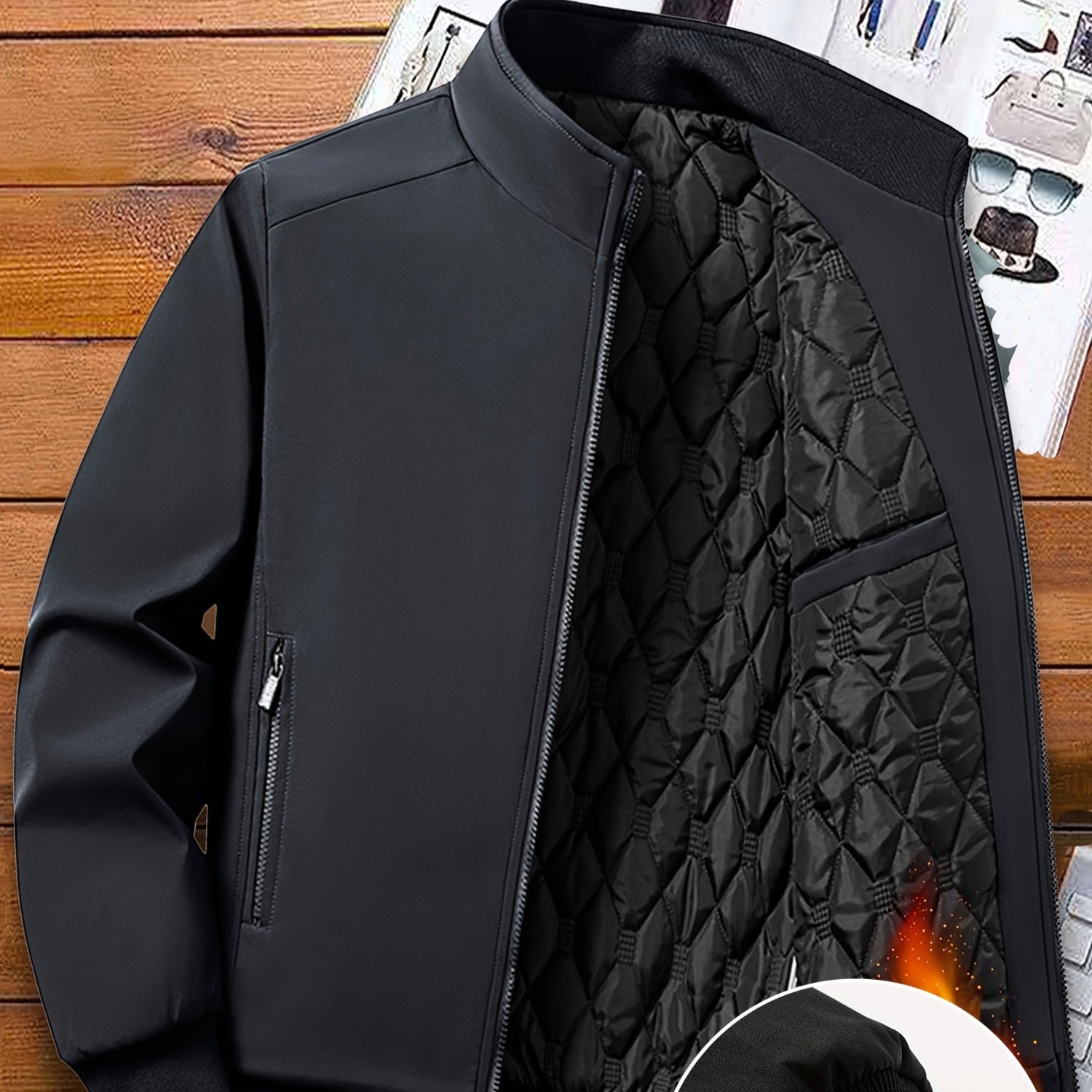 Mens Casual Solid Zip-Up Stand Collar Windbreaker Thermal Quilted Jacket