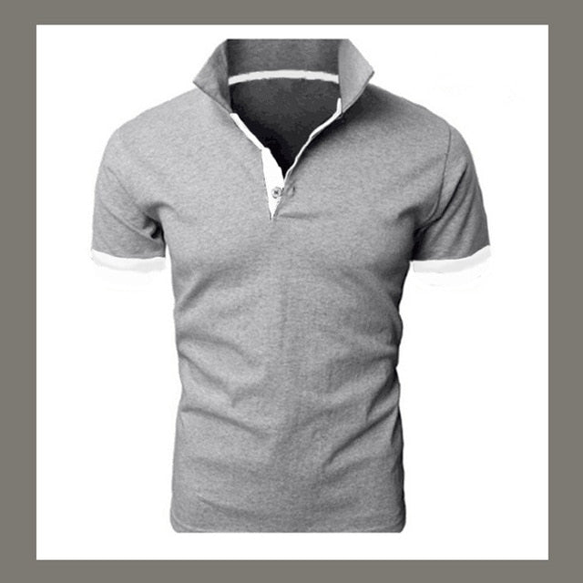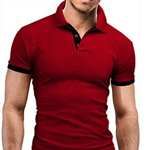 Mens Lapel Casual Short-sleeved Stitching Solid Color T-shirt