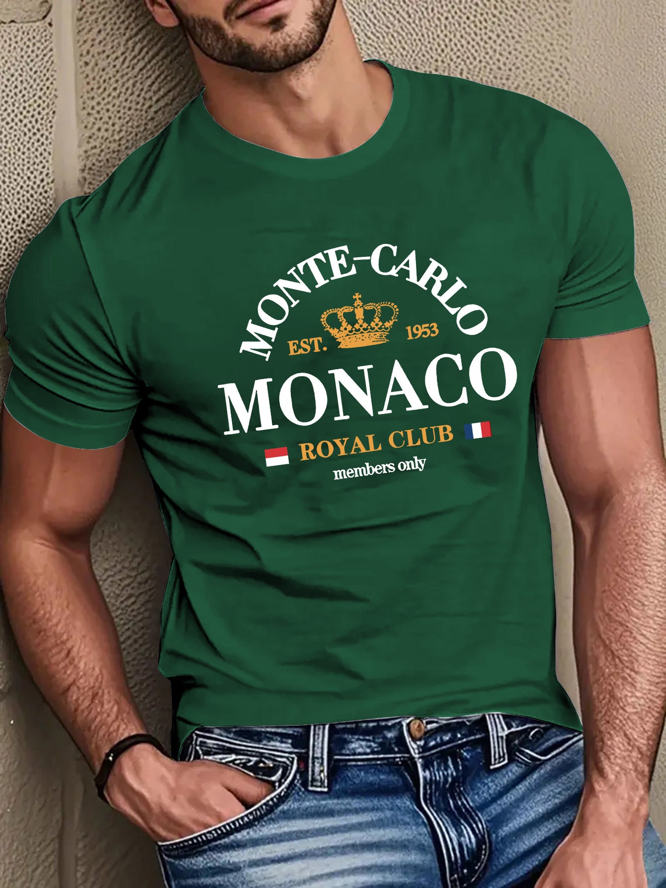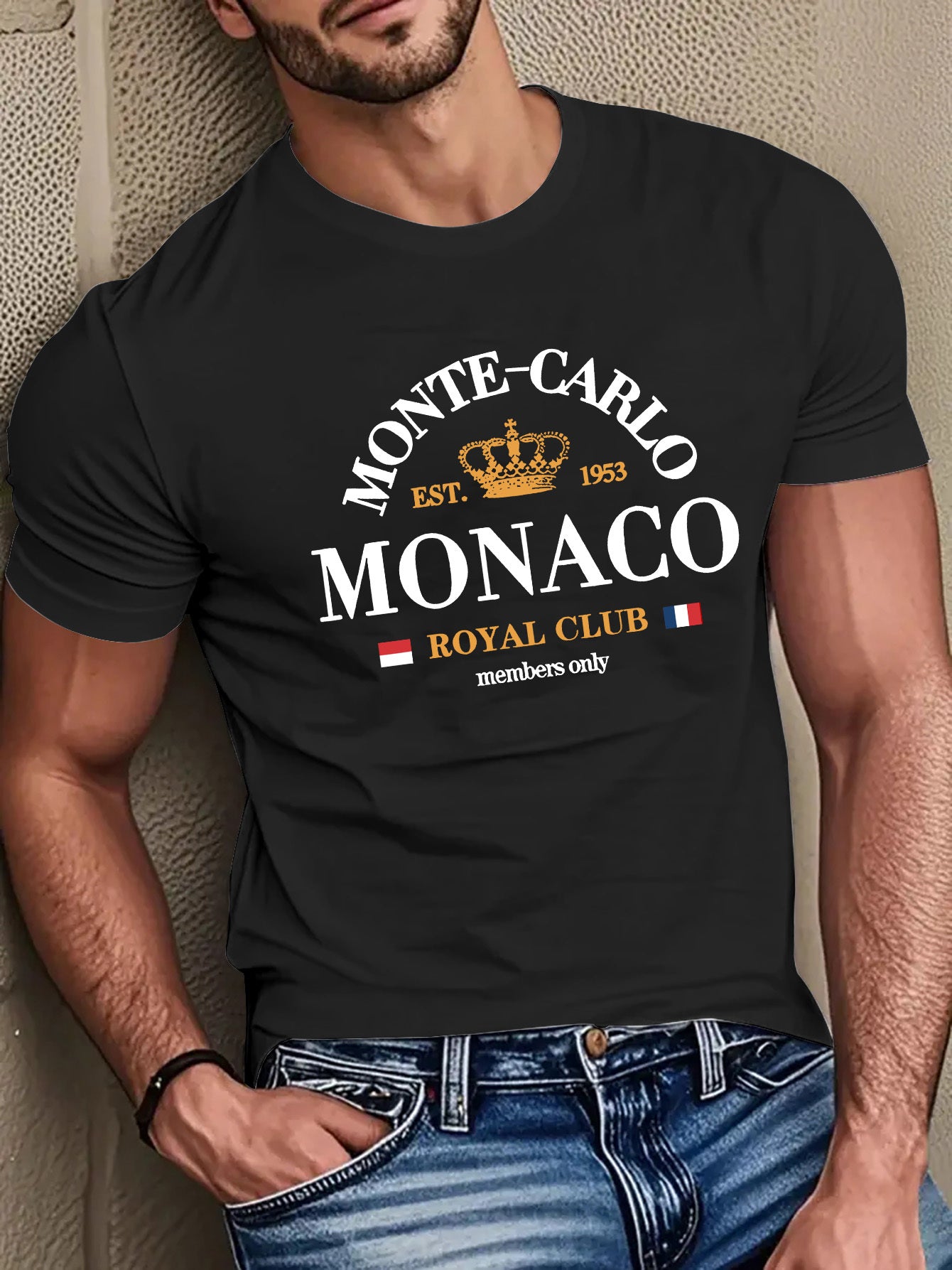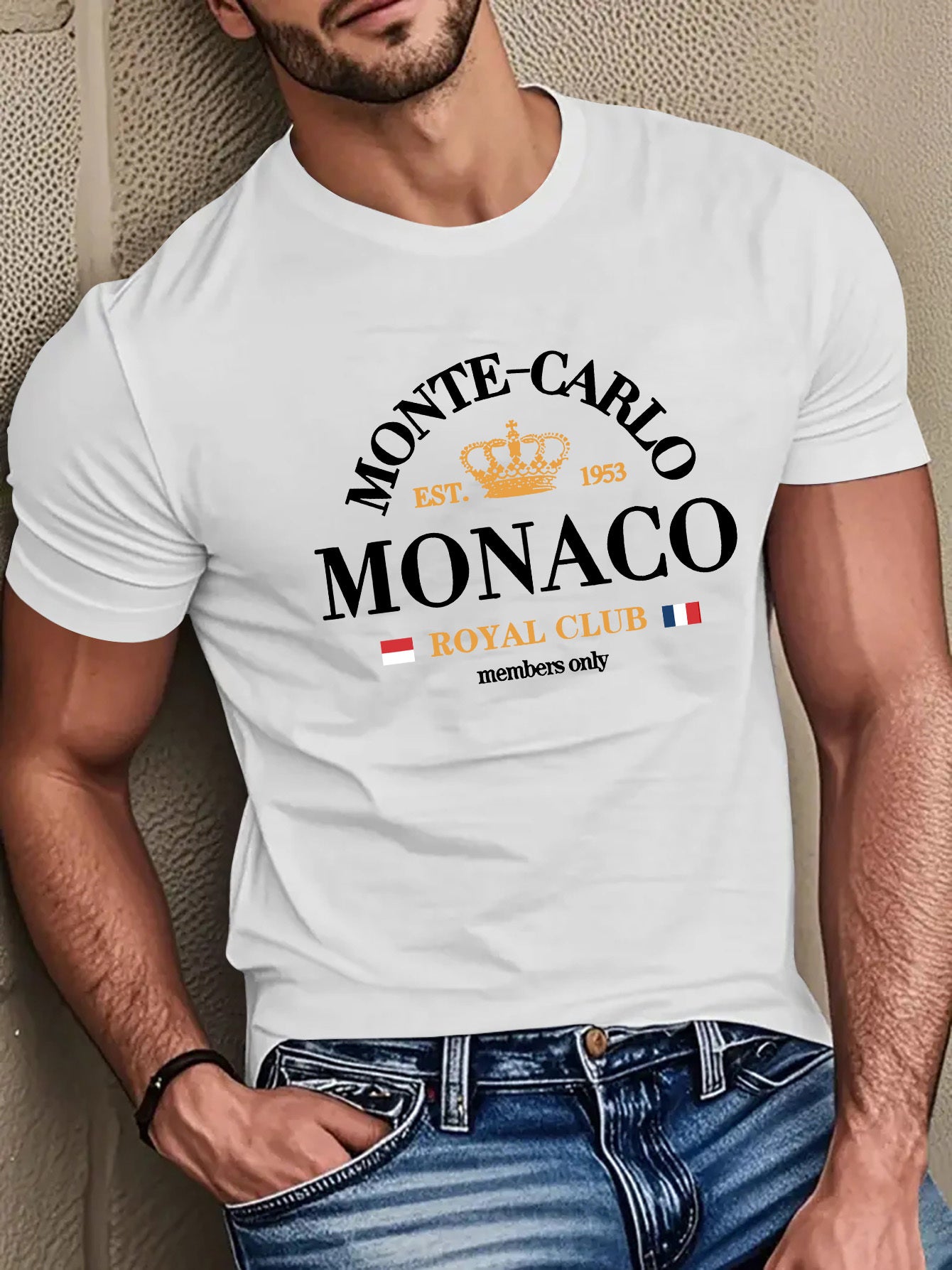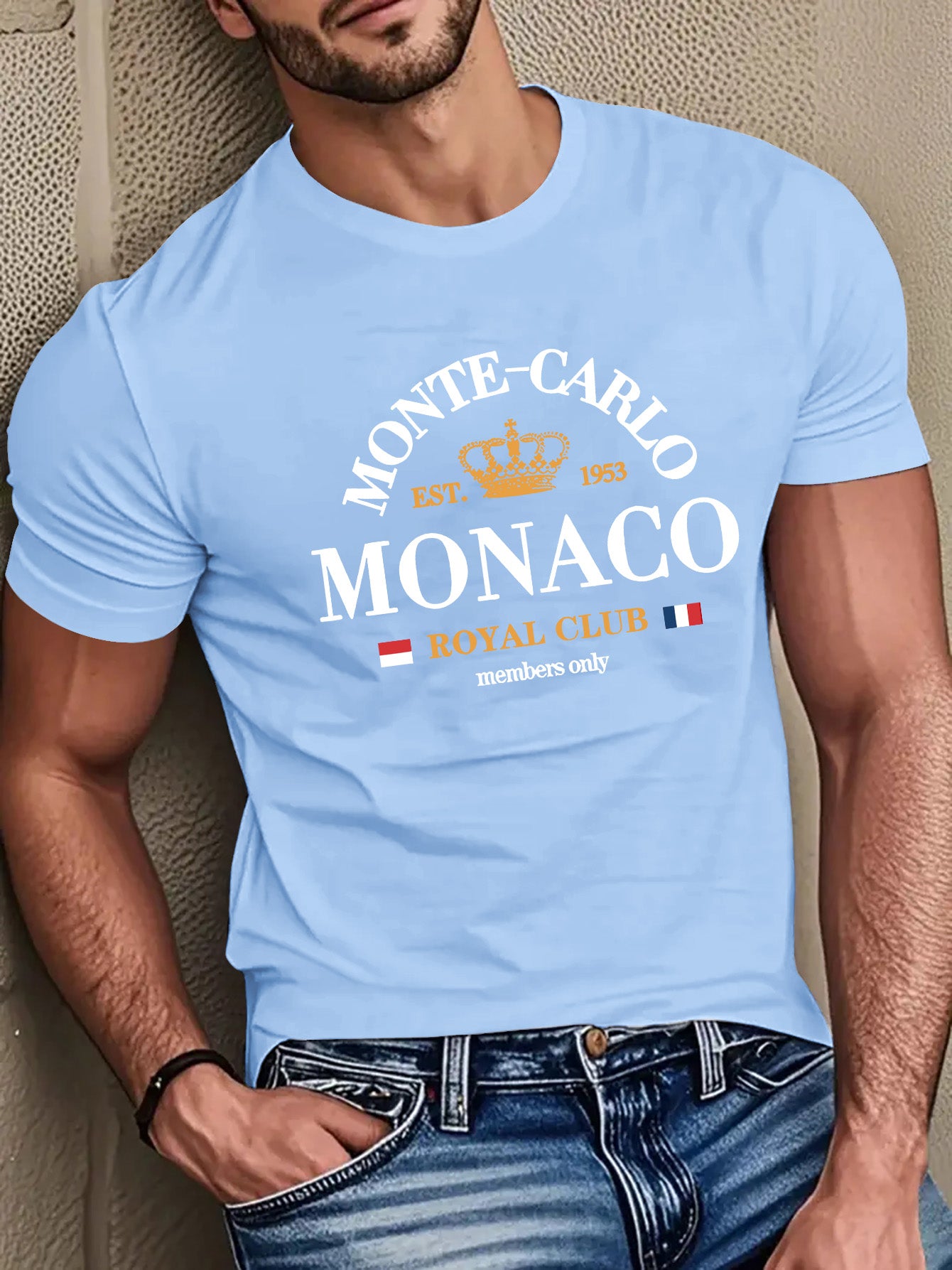 Mens Casual Monte Carlo Royal Club Graphic Print Soft Breathable Crew Neck Ribbed Tshirt