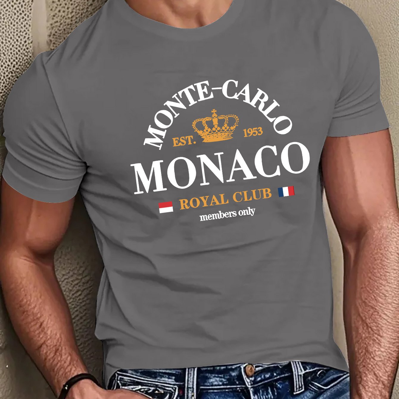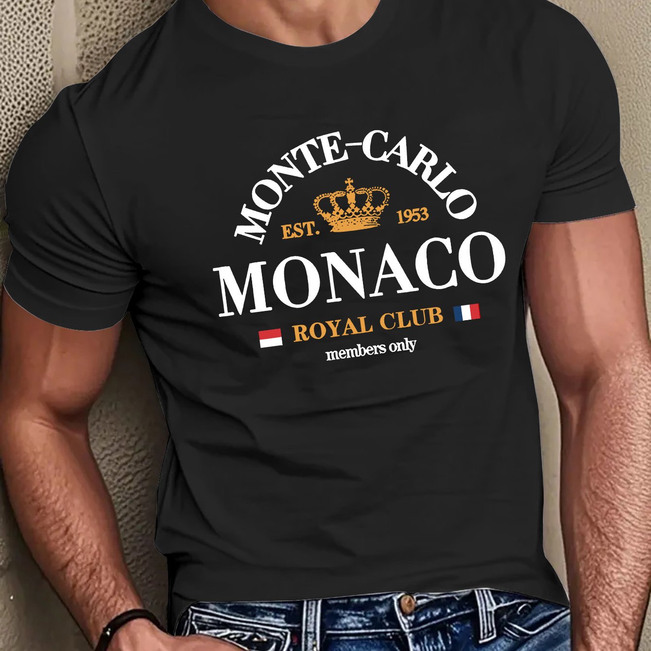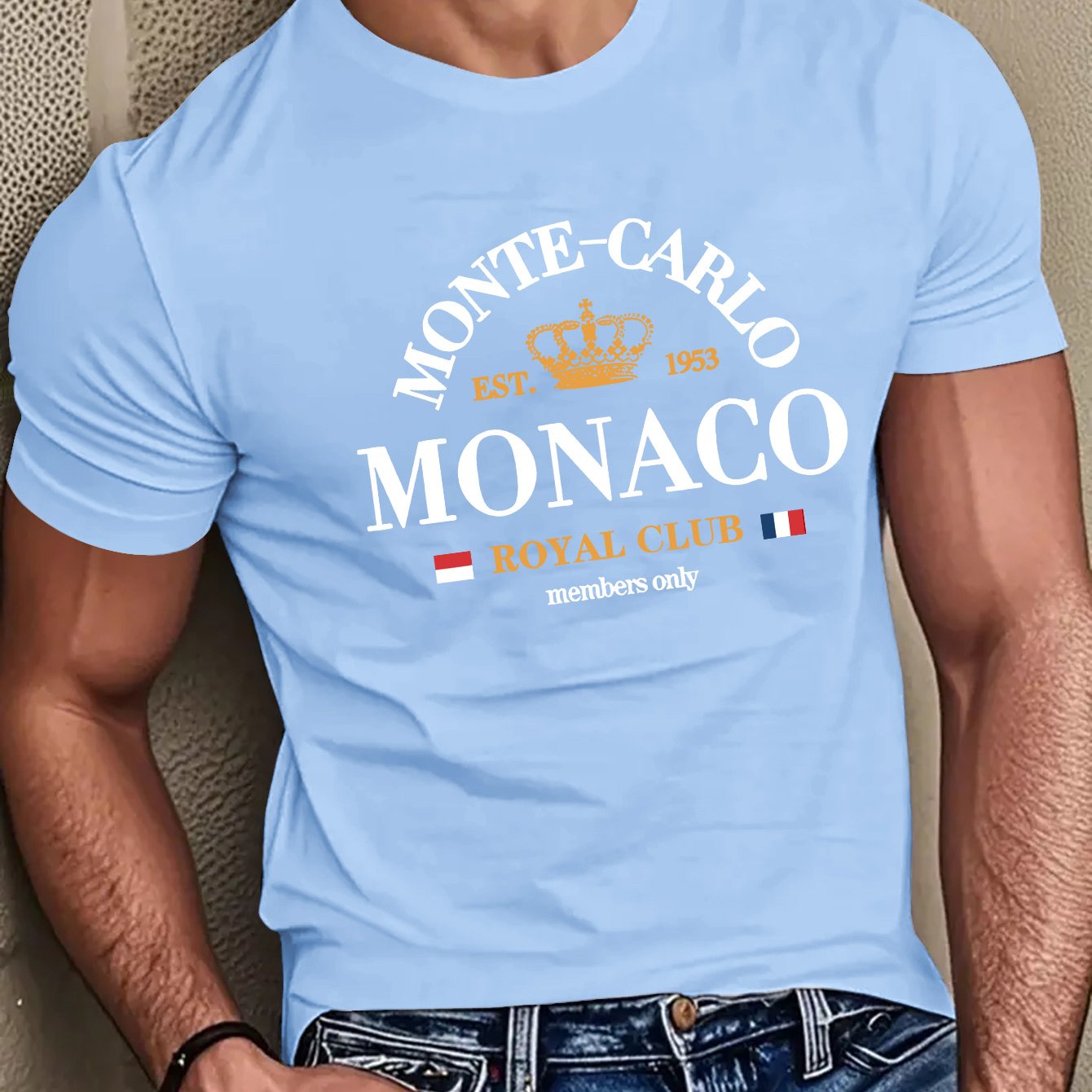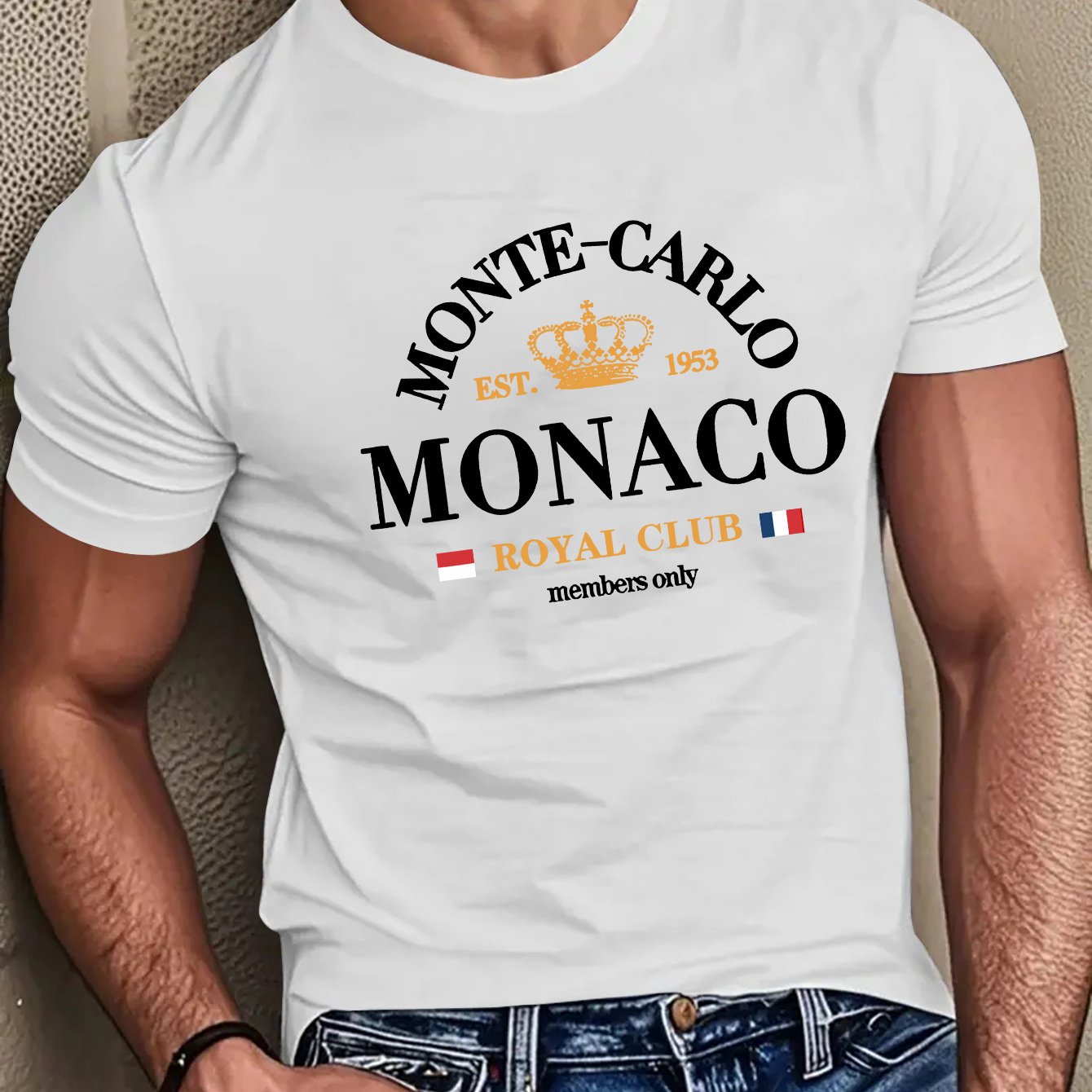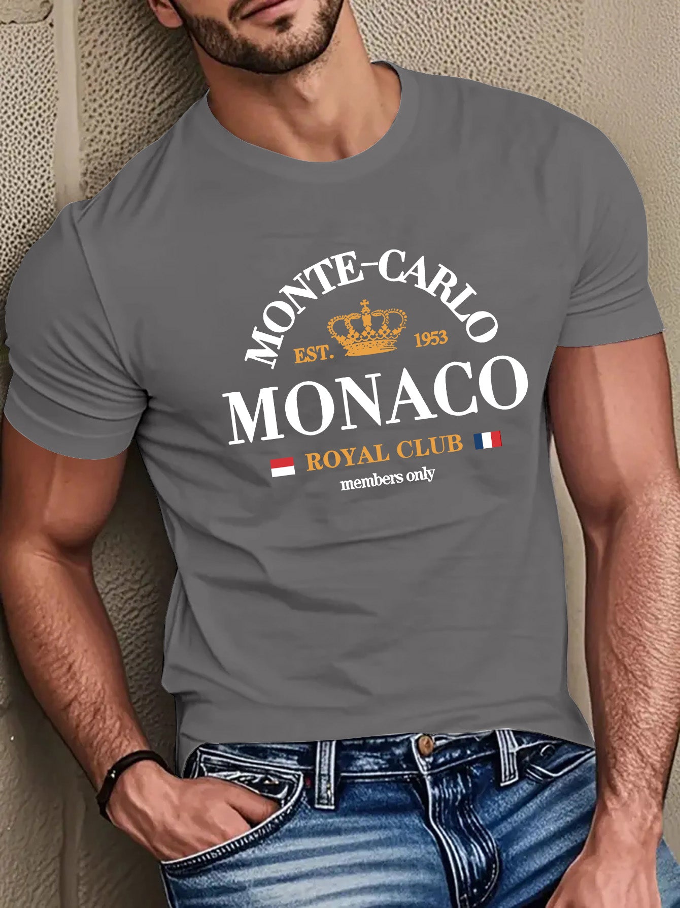 Mens Casual Monte Carlo Royal Club Graphic Print Soft Breathable Crew Neck Ribbed Tshirt