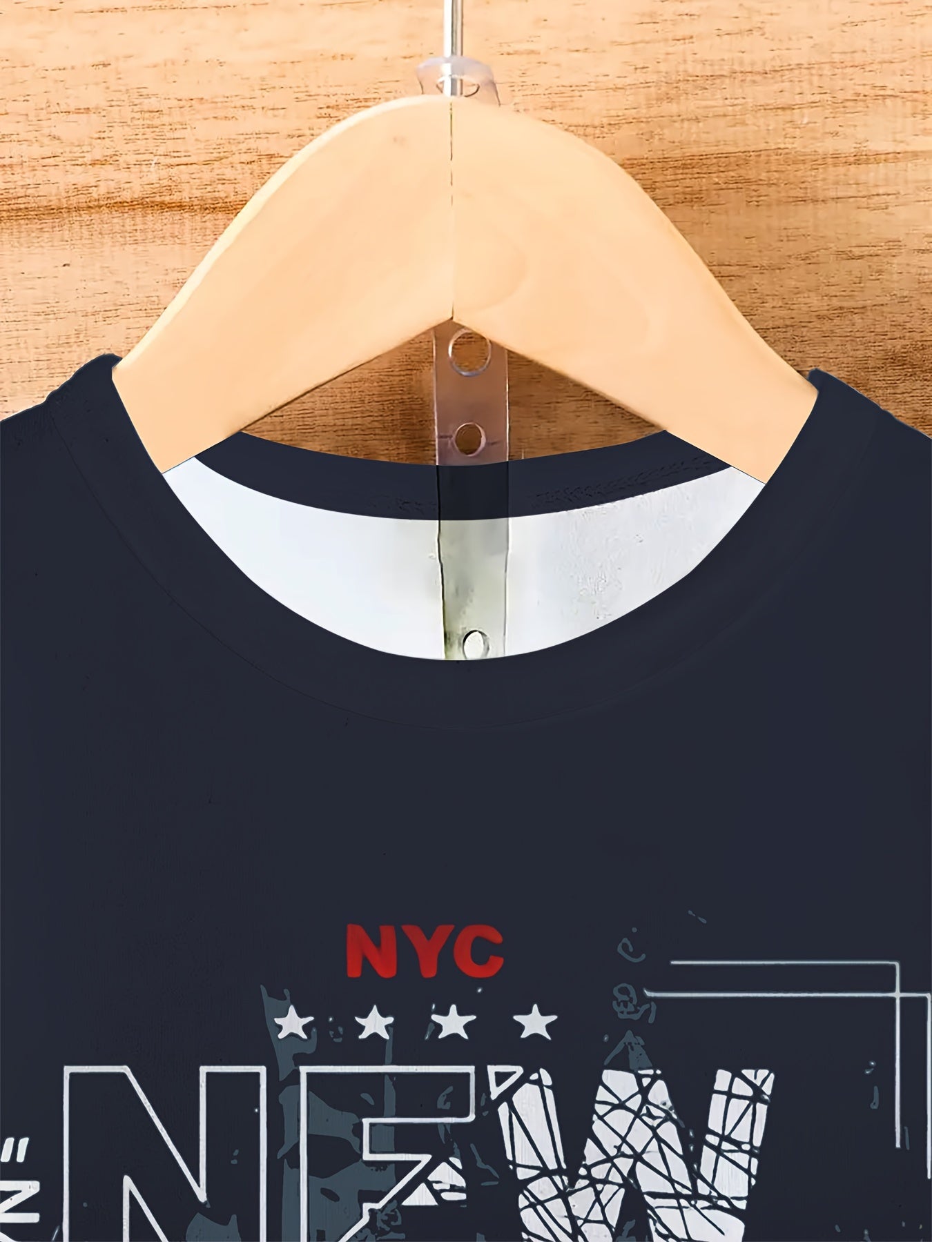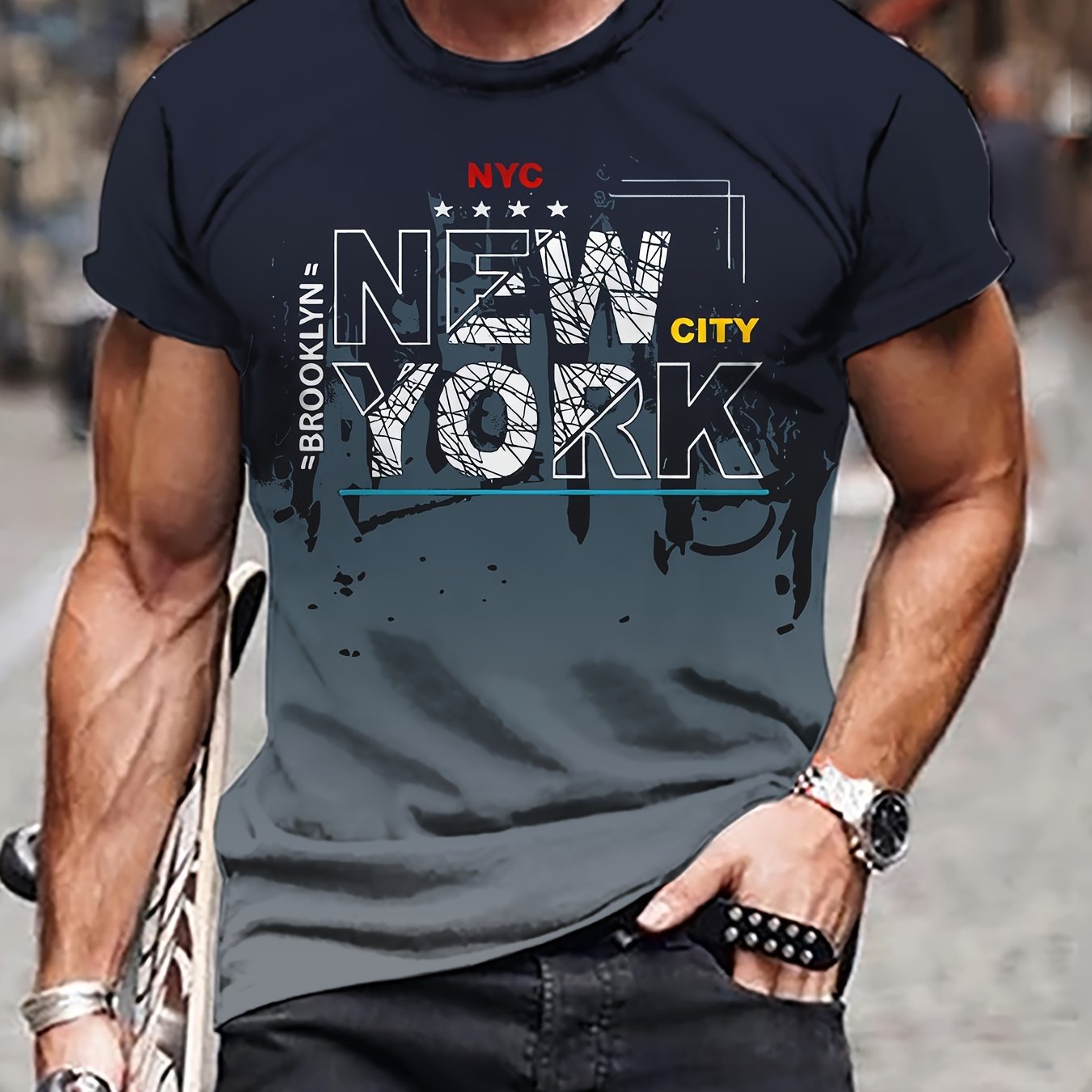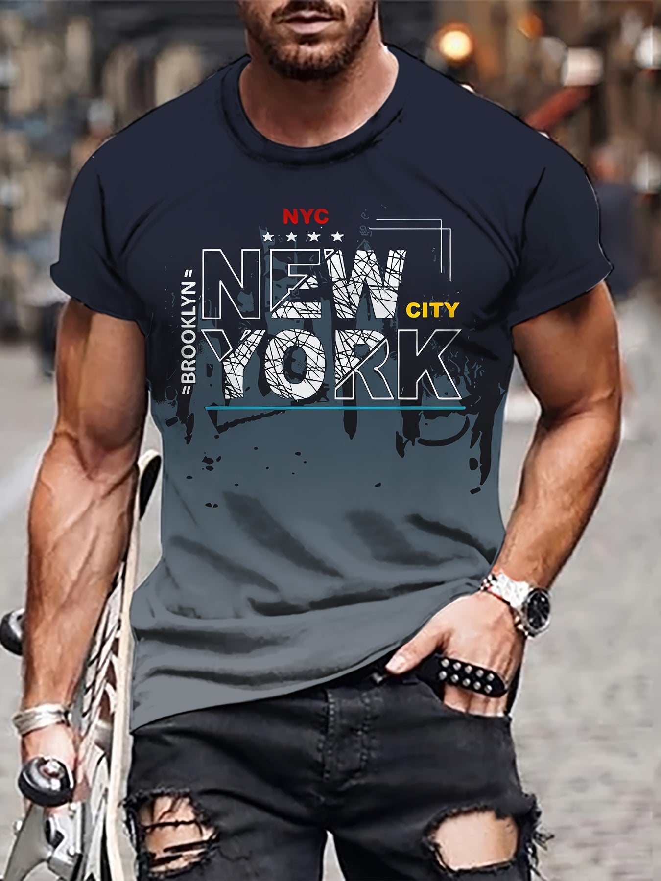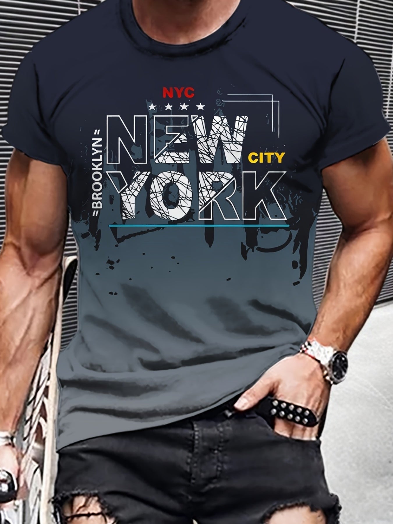 Mens Casual New York Graphic Print Casual Short Sleeve Crew Neck Tshirt