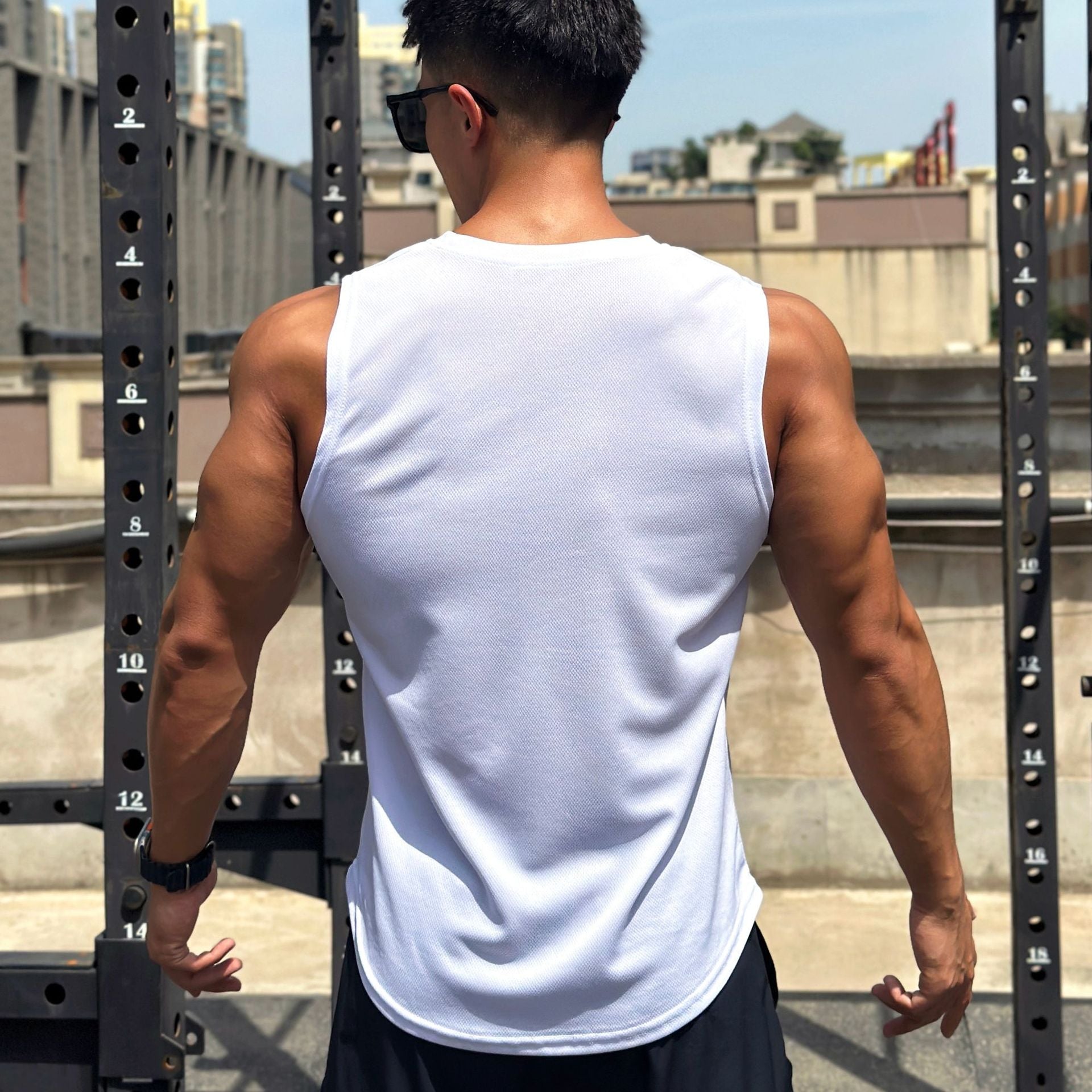 Mens Pullover Round Neck Mesh Base Sports Fitness Sleeveless Quick-Drying Vest