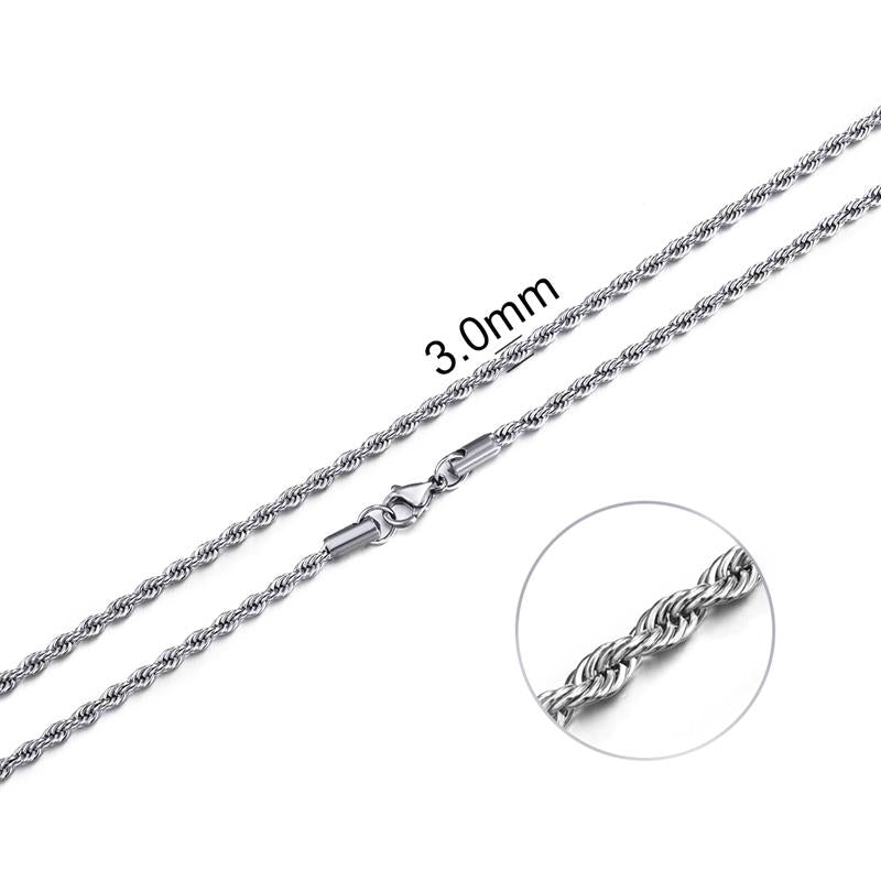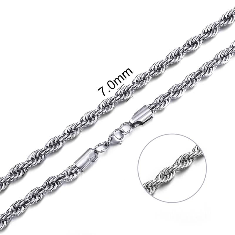 This Mens Rope Stainless Steel Chain is a unique piece of jewelry that is sure to make a statement. It is made with artificial manual polishing and features a punk, rock, classic, trendy, and romantic style. The geometric shape and 316L stainless steel material make it a durable and stylish accessory. The chain length is adjustable at 50, 55, and 60 cm, and it is suitable for any occasion, from parties to anniversaries. It is a great gift for men and women alike.