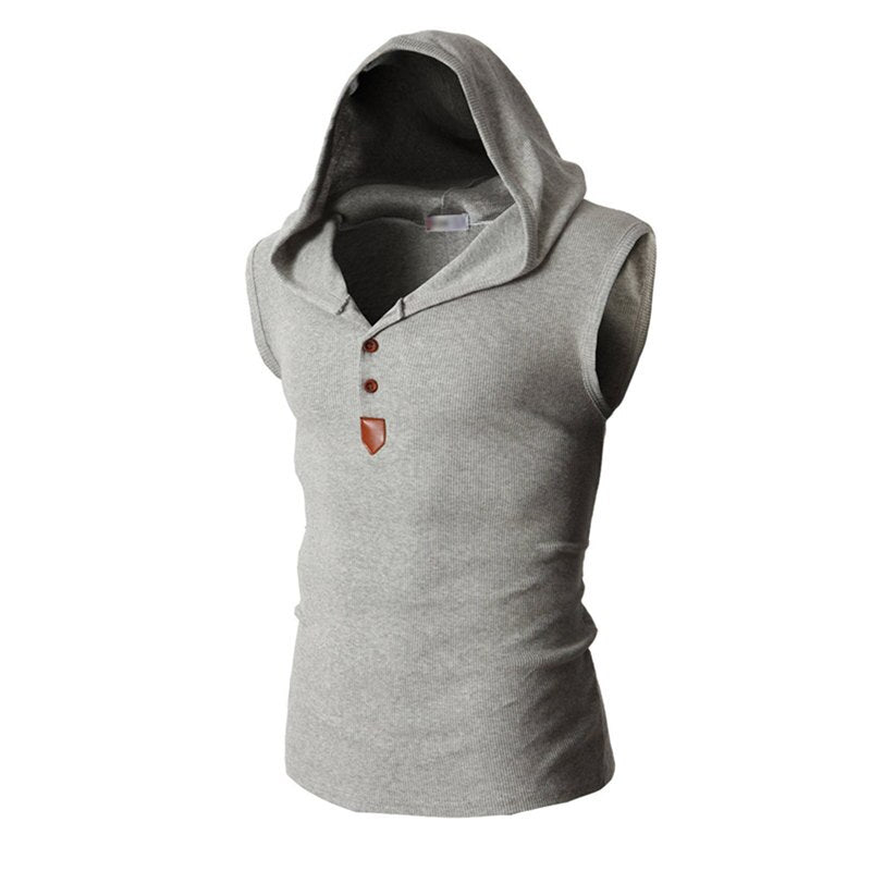 Mens Stretchy Sleeveless Casual Hooded Tank Top