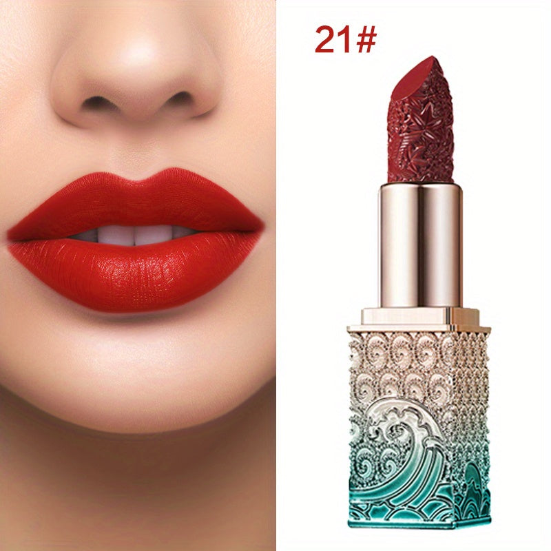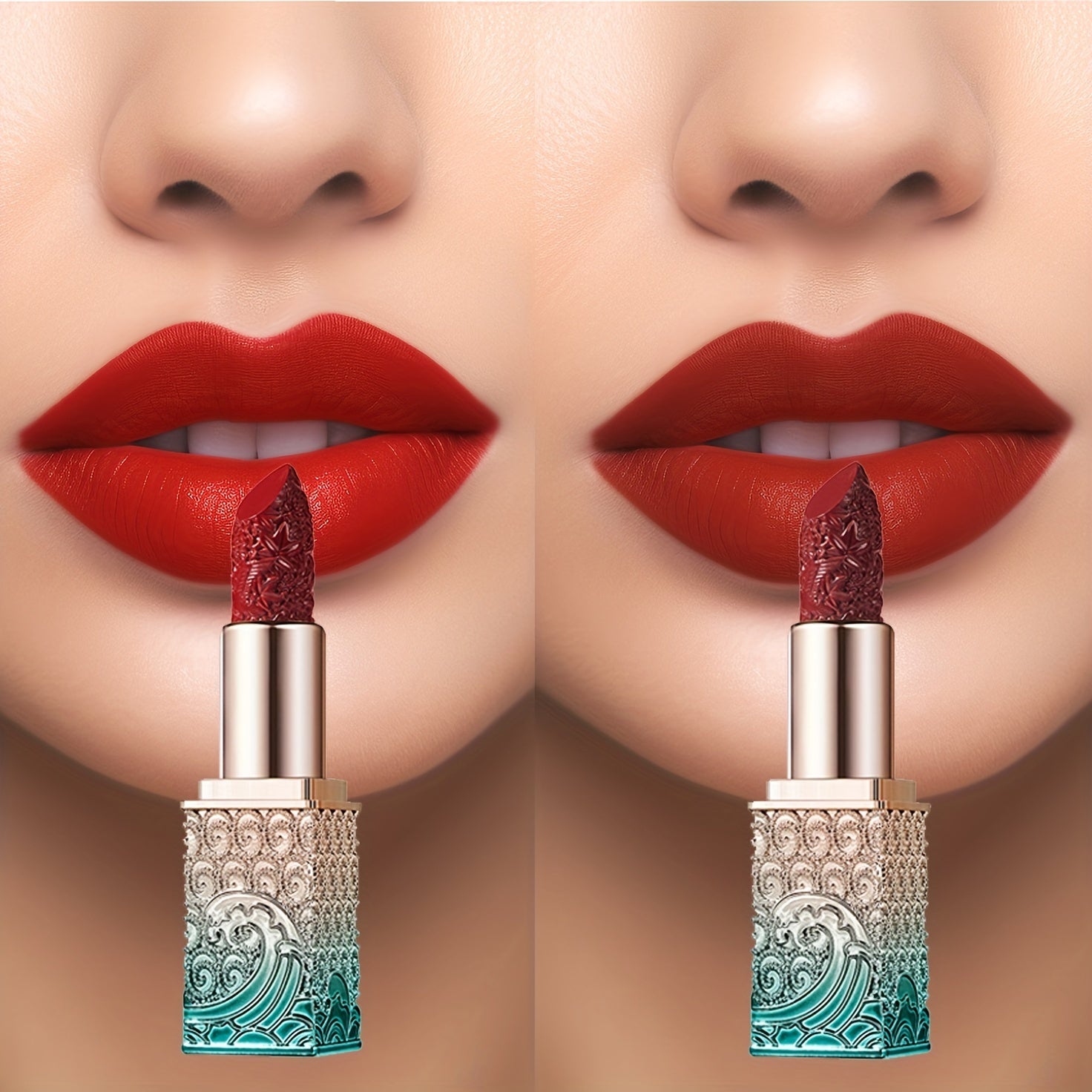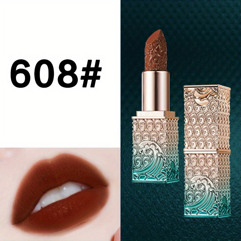 Long Lasting Waterproof Non Stick Silky Matte Lipstick with Carved Square Tube