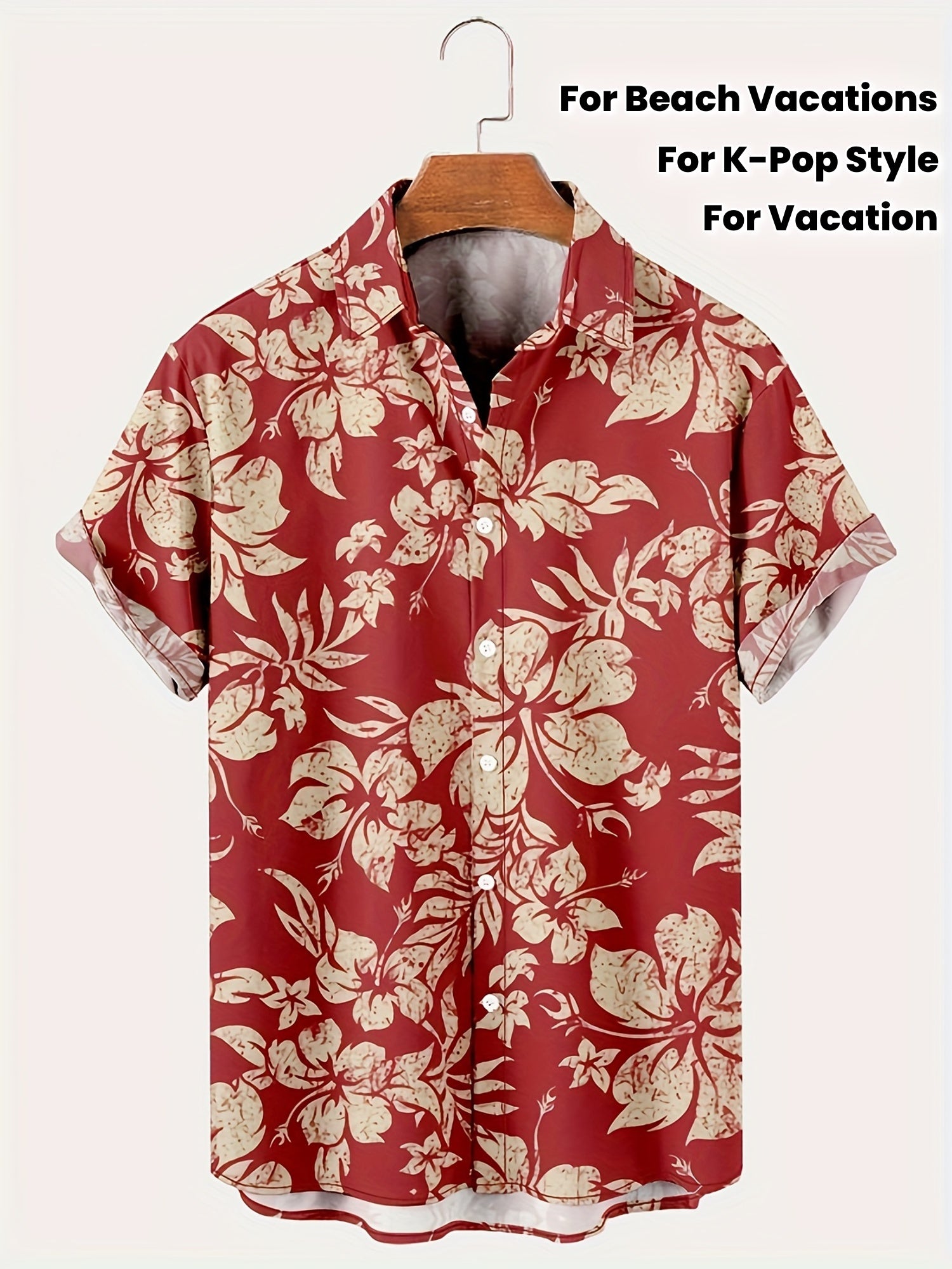 Mens Casual Lightweight Breathable Lapel Hawaiian Tropical Floral Print Shirt
