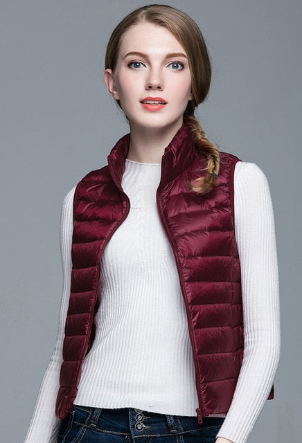 Womens White Duck Down Ultra Light Sleeveless Vest Jacket
