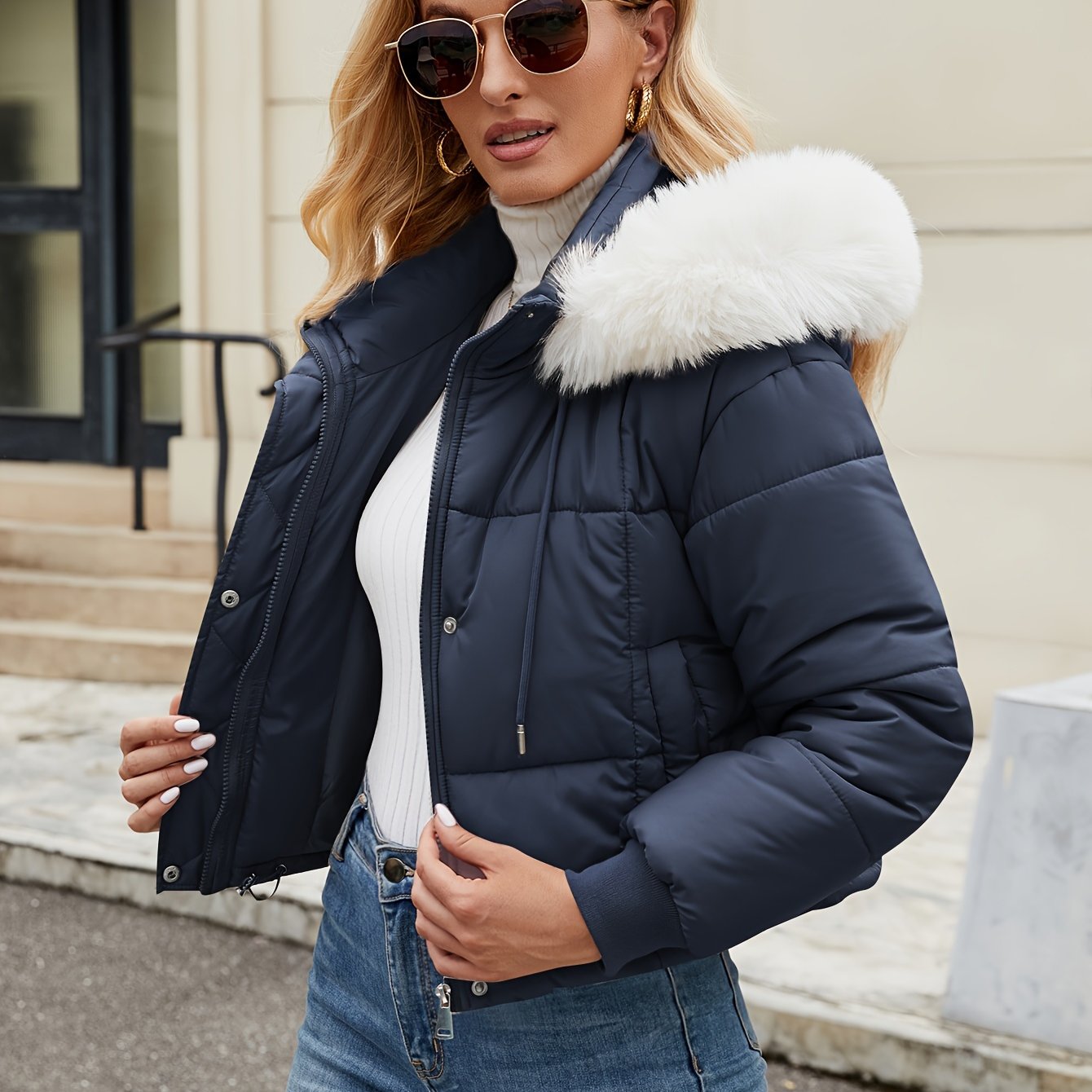 Womens Winter Short Hooded Zipper Closure Casual Puffer Jacket