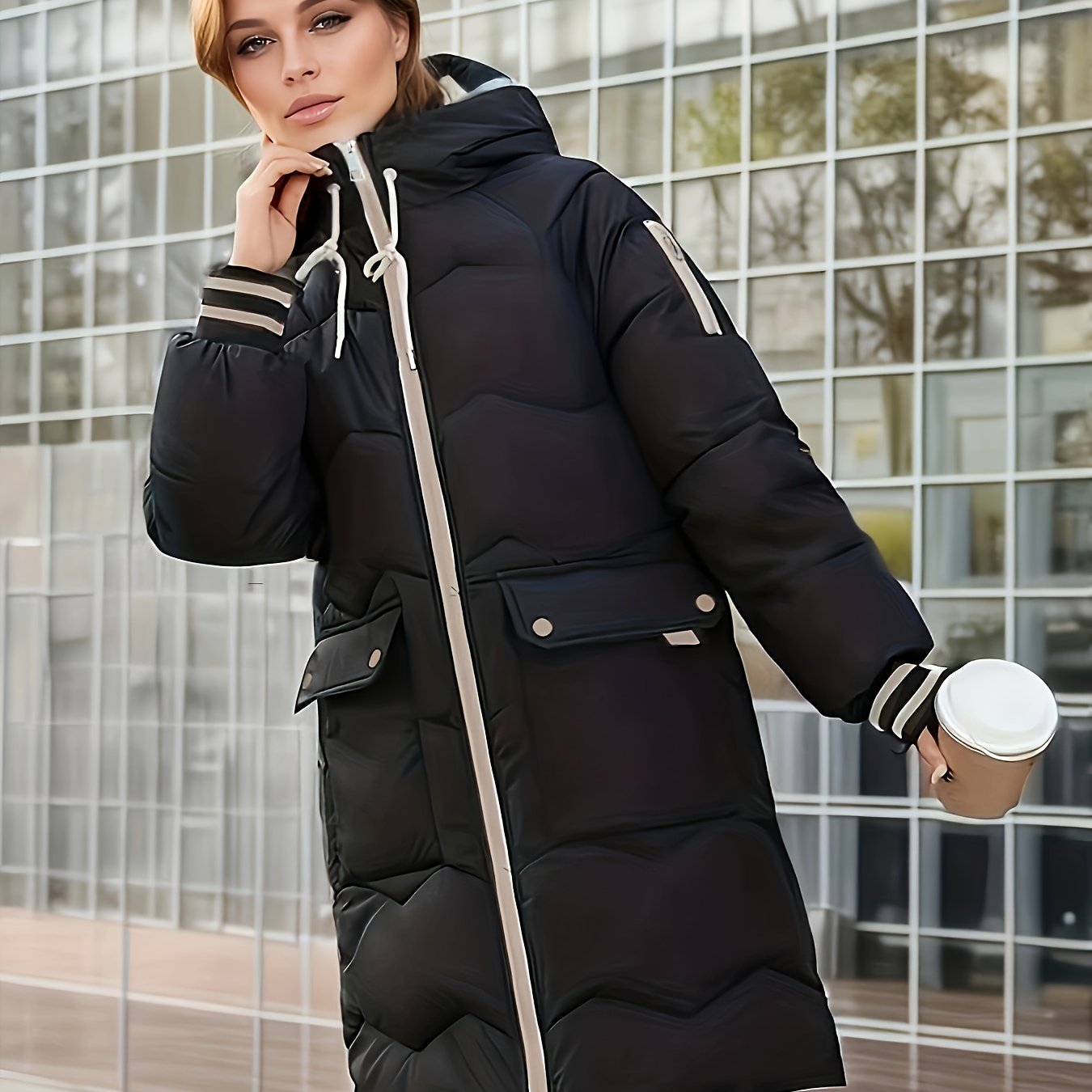 Womens Zip-Up Hoodie Drawstring Casual Puffy Thermal Long Coat